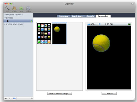 Once the application is deployed onto your device, it will be running automatically. You can capture screenshots of your device by going to the Screenshot tab of the Organizer application, and pressing the capture button (see Figure 28).