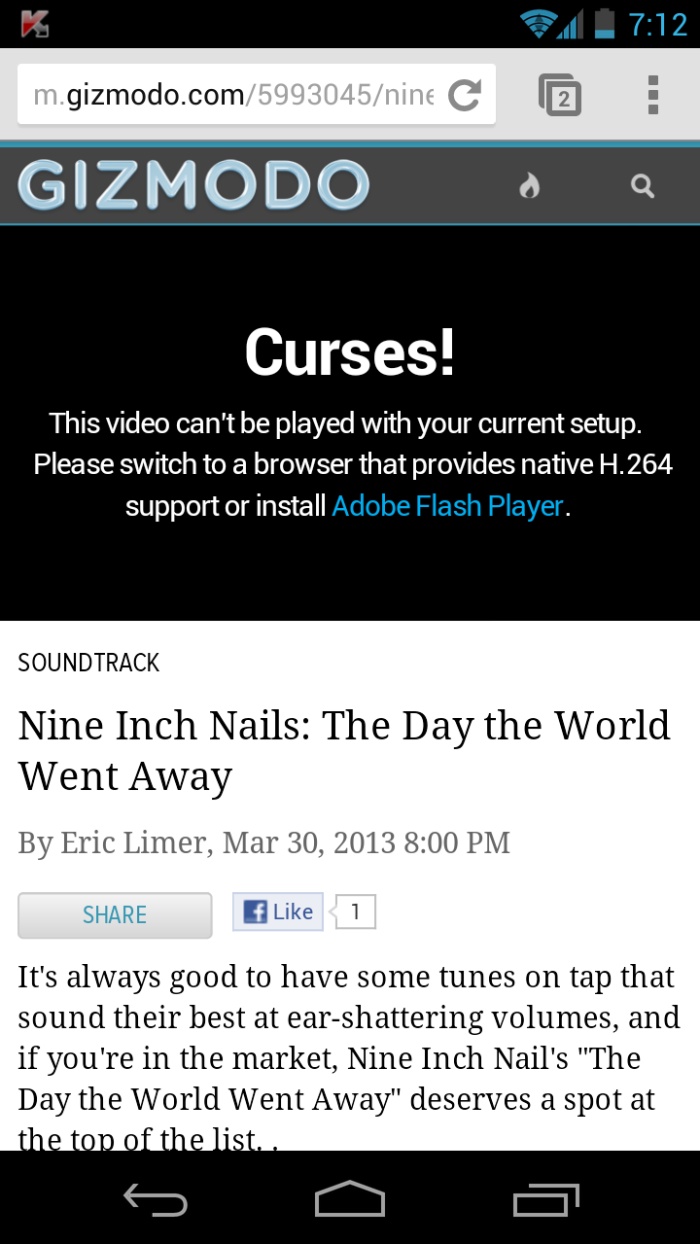 Figure 11 Gizmodo’s mobile site has Flash-driven videos, which could hurt it in smartphone search rankings.