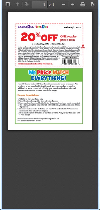Likewise, there are 81 results on ToysRUs.com for the keyword printable coupon, and most people who find them will not be able to print them out. Granted, most of them are expired, but the point remains.