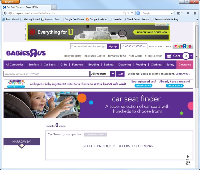 If you look around on the site you should be able to find things like this car seat finder that works on desktops but not on smartphones. If it’s going to be offered in 2013 it needs to work everywhere. Especially if you want to be optimized for search engines like Google.