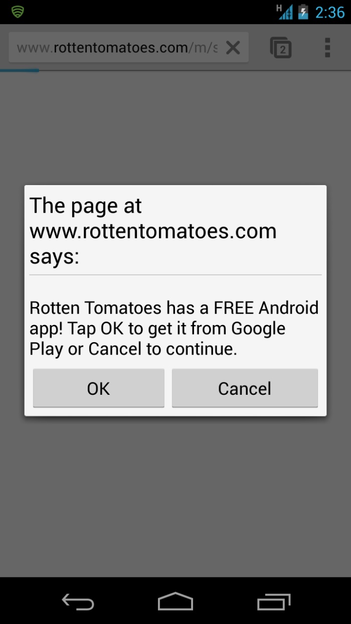 Figure 17 Google has been critical of sites like rottentomatoes.com, which prompts users to download mobile apps before sending them along to websites.