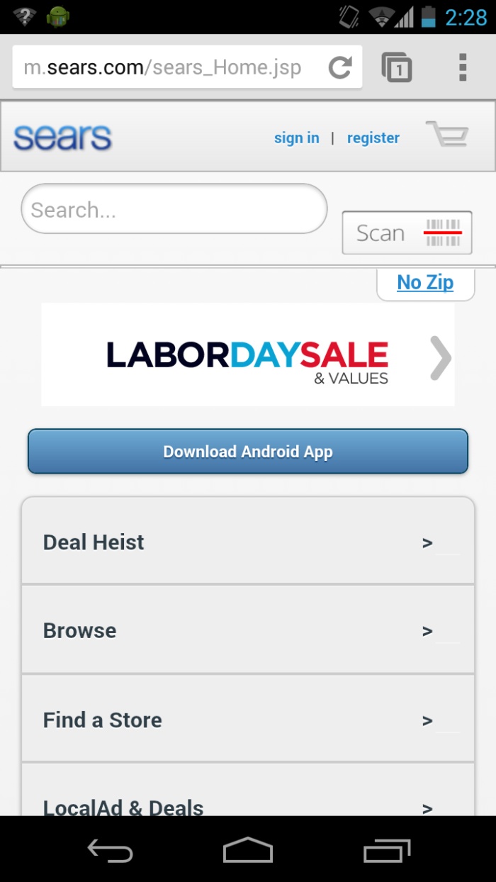 Figure 19 The Sears mobile web site includes a feature that allows users to scan to compare with Sears prices.