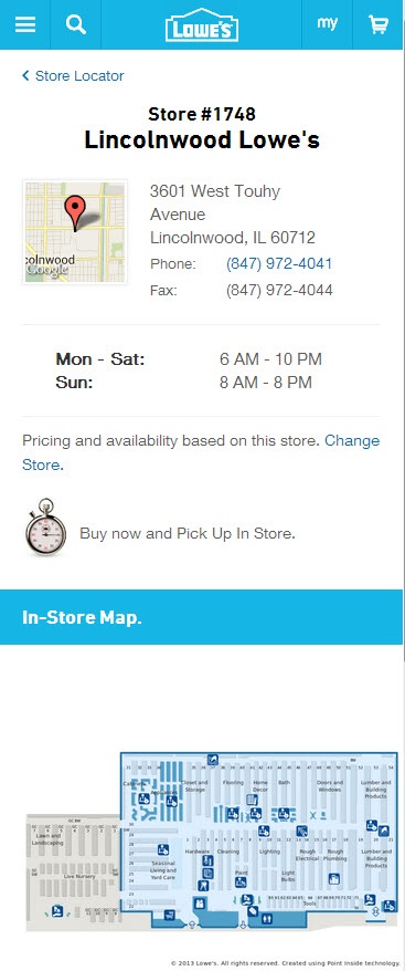 Figure 20 Lowe’s mobile store locator pages offer in-store maps to satisfy a core user need.