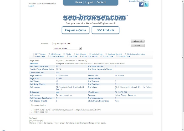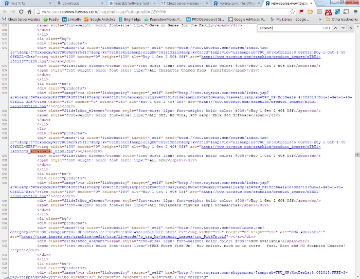 Figure 8 Alternate tag is not found on www.toysrus.com pointing to the mobile site.