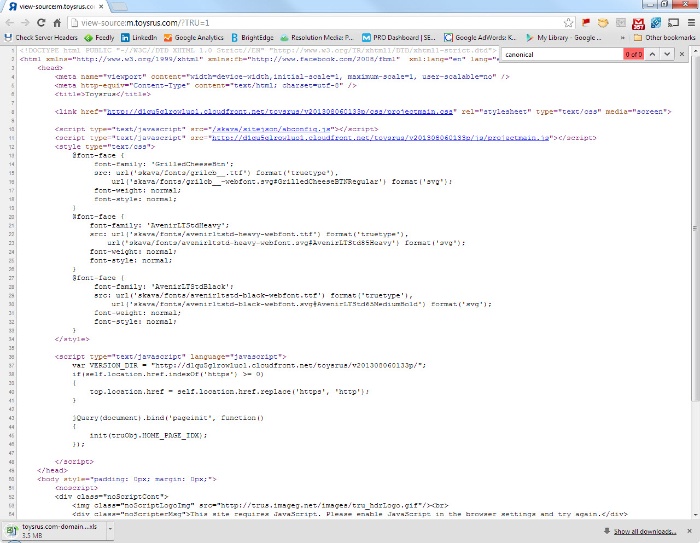 Figure 9 Canonical tag pointing to equivalent content is not found on m.toysrus.com