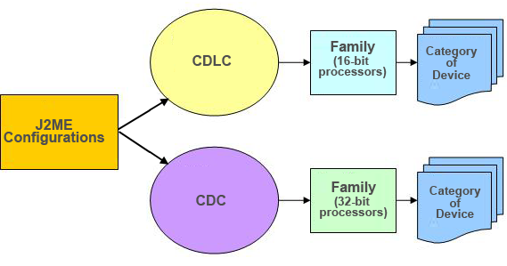 - Connected Device Limited Configuration (CLDC) – This J2ME Configuration constitute devices that are 16-bit processors and have memory power in the range of 128 KB. The building block of CDLC is k Virtual machine (kVM) which is adapted to perform in the family of most resource constrained devices.