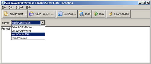 1. Create a Project: Invoke the Sun Wireless Toolkit 2.5 from the Program Menu. Hit New Project to create a new project or Open Project to open an existing one. Refer Fig-3.