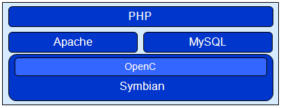 In the Symbian Series60 environment the AMP stack is implemented over Open C. Open C is a set of industry-standard POSIX and middleware C libraries for S60 on Symbian OS. The stack can be something like as below: