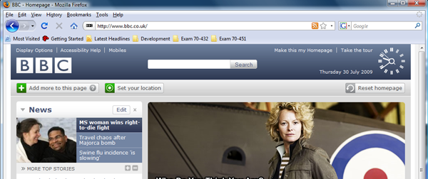 To illustrate what we are about to do, browse to http://www.bbc.co.uk/. The full desktop site appears: