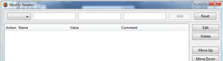 In Firefox, click on the Tools menu, and choose Modify Headers. The Modify Headers dialog appears (it isn’t the most intuitive interface):
