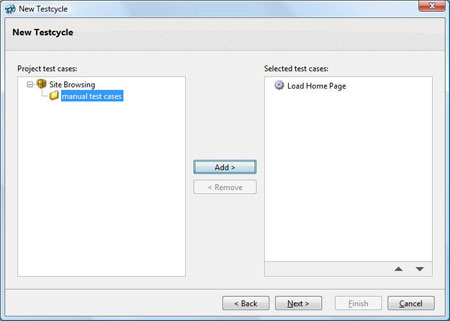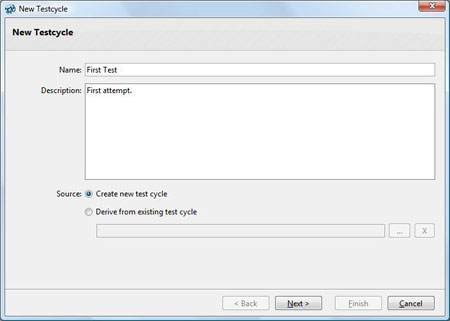 When you’ve created the test project, you can test it. Click on Test Case Runtime in the left-hand pane and then click New test cycle. Enter the relevant details into the pop-up dialog that appears and click Next.