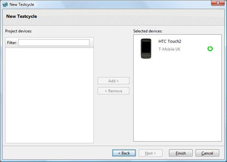 Now select the device you wish to use for this test cycle, and finally click Finish.