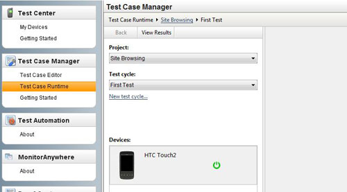 Figure 12: DeviceAnywhere – Selecting a test case