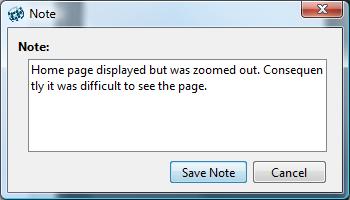 If there’s a problem (as in the screen above, where the site has not opened full-screen), you can annotate some notes by selecting Add Note from the drop-down More option: