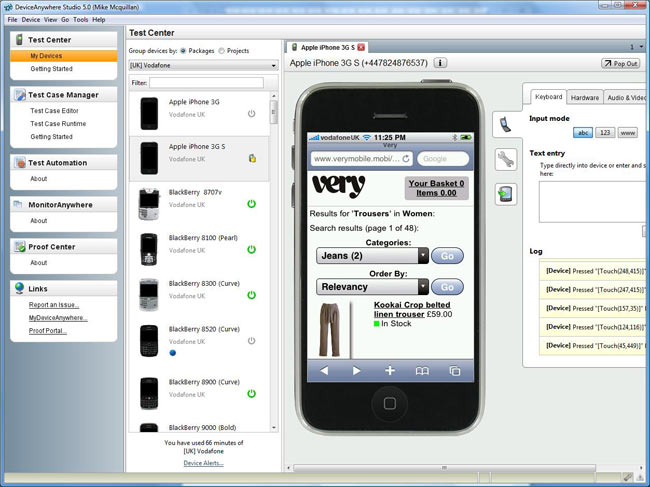 Figure 8: DeviceAnywhere – Using a device