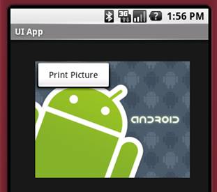 Here, you have a FrameLayout within an AbsoluteLayout. Within the FrameLayout, you embed an ImageView view. The UI is as shown in Figure 10.
