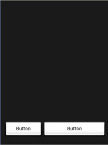 Figure 6 shows the two Button views located at their specified positions using the android_layout_x and android_layout_y attributes.