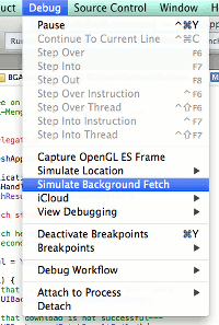 Figure 3: Xcode allows you to simulate background fetch for your app