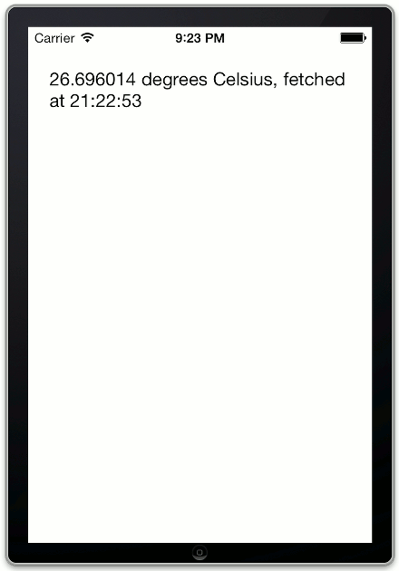When you switch back to your application, you will see the weather information that you have obtained during the background fetch (see Figure 8).