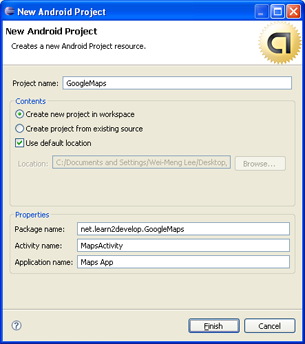 Using Eclipse, create a new Android project and name GoogleMaps as shown in Figure 1.