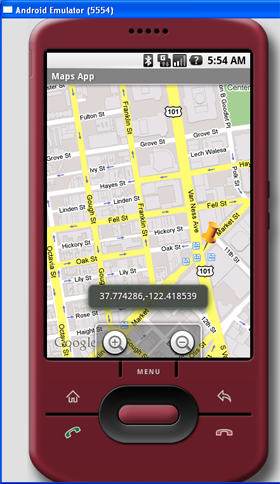 That’s it! That’s all you need to do to display the Google Maps in your application. Press F11 in Eclipse to deploy the application onto an Android emulator. Figure 3 shows the Google map in all its glory.