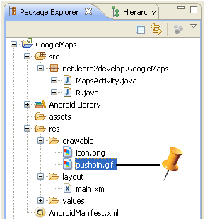 To display the Google Maps in your Android application, modify the main.xml file located in the res/layout folder. You shall use the element to display the Google Maps in your activity. In addition, let’s use the element to position the map within the activity: