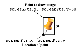 canvas.drawBitmap(bmp, screenPts.x, screenPts.y-48, null);
