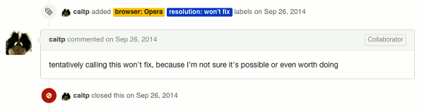 It might also be argued that this is just an unfortunate side effect, collateral damage: with the advancement of web technologies there will be casualties. Or that Opera Mini is a relic from a different Internet age, a dinosaur; something that worked in the old world order, but now things have moved on, and if you can’t keep up, then you’re out of luck.