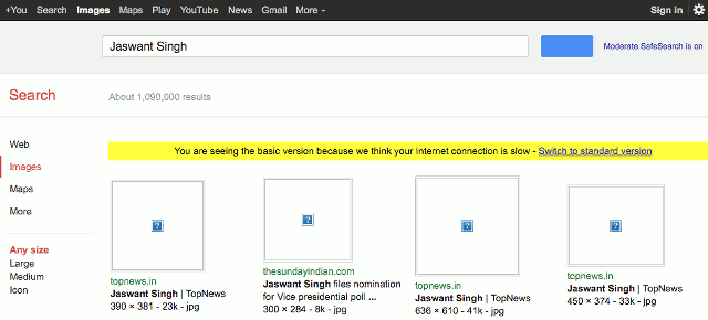 Bandwidth detection is being implemented all around you: Google’s doing it (try image search on a slow connection), Facebook’s doing it, and you can do it too! In the sample implementation in the article mentioned above, a ~40x saving in page weight was possible without degrading the user experience. To the contrary, this huge page weight saving will very much enhance the experience of users on slow data connections. The results are illustrated below.