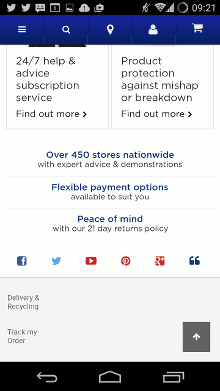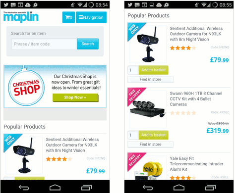 - Layout: Changes in layout were analysed to yield clues as to how each site was built. The layout of maplin.co.uk on mobile differs in some important respects from its desktop cousin.