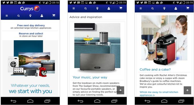 The Currys desktop and mobile websites, on the other hand, are obviously making use of fluid grids, and the content on both is almost identical.