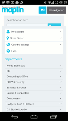 Maplin site on mobileThe navigation hierarchy has also been changed, interestingly, as can be seen below.