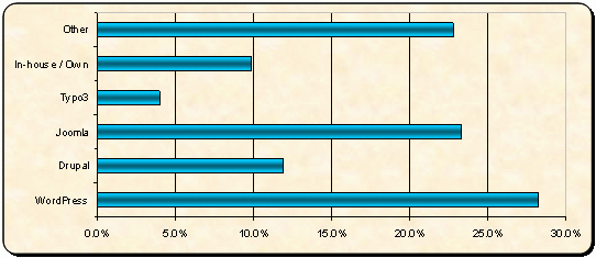 - the most popular CMS is WordPress, followed by Joomla – no real surprises here