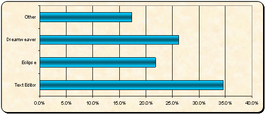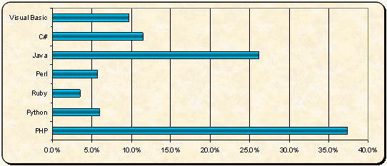 - PHP and Apache are the tools of choice among those surveyed, although both Java and .NET feature significantly too – this is interesting, but probably not unexpected
